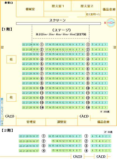 | 研修ホール(1F+2F) | 400 | 499 | 7,300円 | 14,600円 |