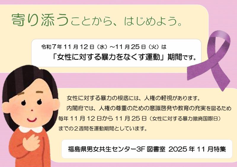 11月の特集展示コーナーは、『寄り添うことから、はじめよう。』がテーマです。